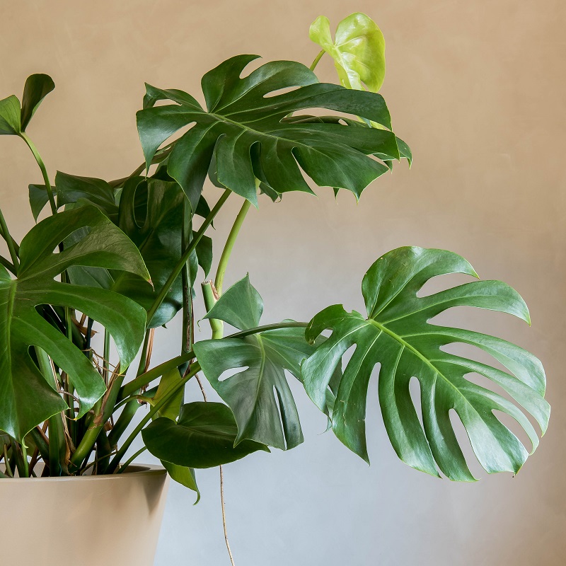La Monstera Deliciosa vuole spazi illuminati ma senza luce diretta, poiché quest’ultima può rovinare le sue foglie grandi e lucide, per avere una pianta rigogliosa e forte basta annaffiarla quando la superficie del terriccio è secca al tatto. Anche se non strettamente necessario è consigliato di mantenere alto il livello di umidità della tua Monstera, vaporizzare occasionalmente dell’acqua sulle foglie sarà sufficiente.